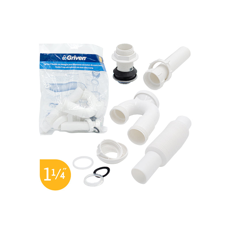 Trampa P Flexible Con Desagüe Para Lavamanos Con Botón De Acero